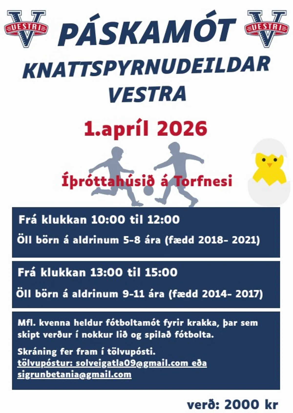 ATH mótið er ekki einungis fyrir iðkendur Vestra svo ef þið eigið frænkur og frændur á þessum aldri þá endilega hvetjið þau til að koma með